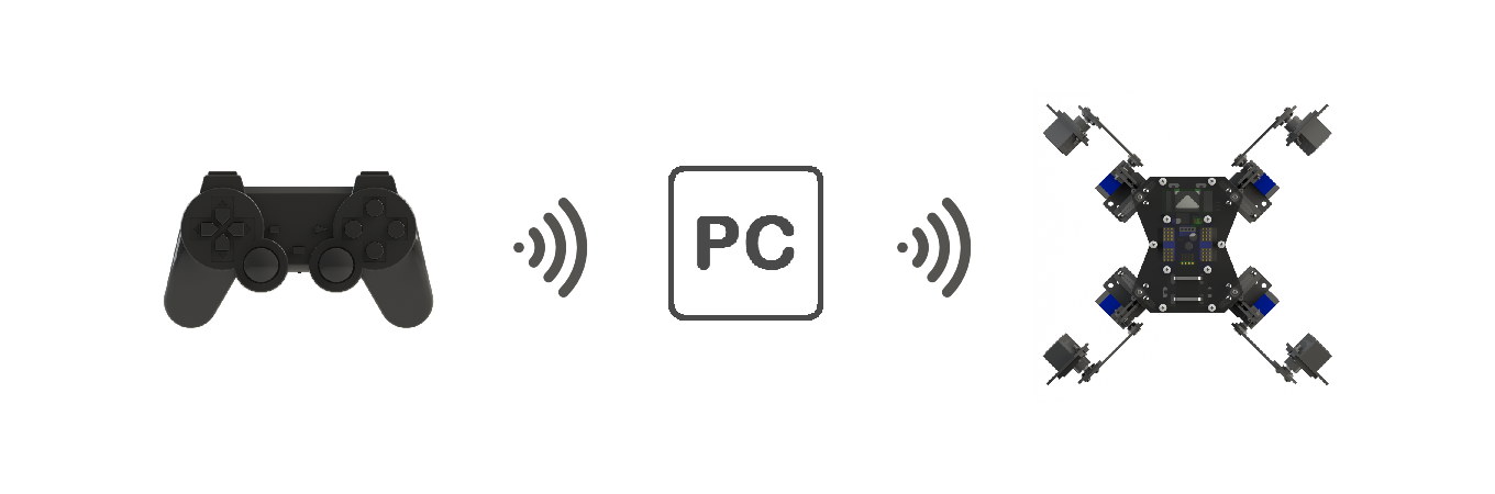 (open space, gamepad to PC & PC to robot)