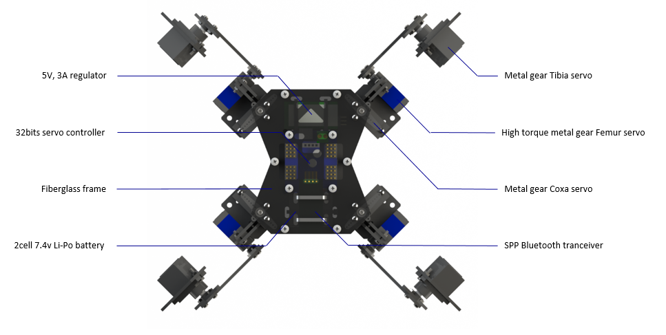 -Femur servo torque: 3.0kg/cm @ 4.8v